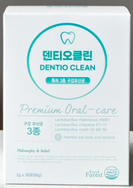 덴티오클린은 구강 건강을 위해 개발된 국내 최초 분말형 구강 유산균 제품으로, 특허받은 유산균을 통해 입냄새 개선, 잇몸 건강 증진, 치태 형성 억제에 도움을 줍니다. 이 제품은 1포당 100억 마리 이상의 고함량 유산균을 포함하며, 구강 내 유익균을 늘리고 유해균을 억제하는 역할을 합니다. 또한, 17종의 다니스코 유산균이 포함되어 장 건강에도 긍정적인 영향을 미친다고 알려져 있습니다.
