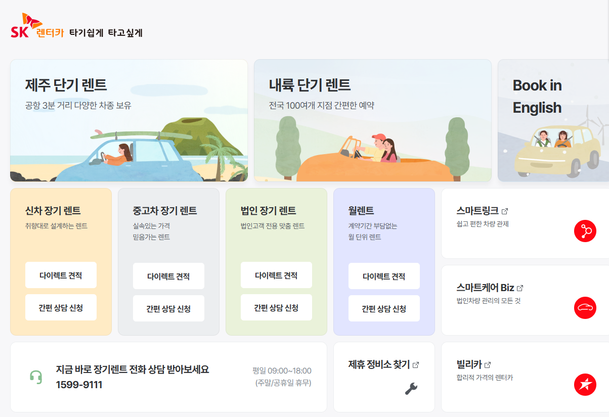 SK렌터카는 대형 브랜드답게 공항 인근에 대규모 지점을 운영하고 있어 도착하자마자 바로 차량을 인수할 수 있다는 장점이 있습니다. 차량 관리가 체계적이고 신차 보유율이 높아, 서비스 품질에 신경 쓰는 분들에게 적합합니다. 가족이나 커플 여행객에게 특히 인기가 많습니다.